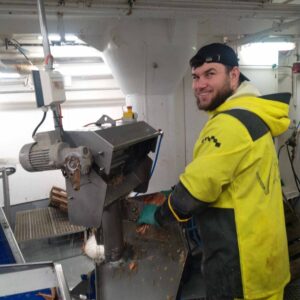 Diferența dintre o fabrică de pe țărm și una de pe o navă este uriașă. Munca pe uscat este o sărbătoare în comparație cu ceea ce se întâmplă pe mare. Dar și salariul este de trei ori mai mic. Cea mai grea parte este prima săptămână: lupta împotriva răului de mare și obișnuirea cu noul regim.